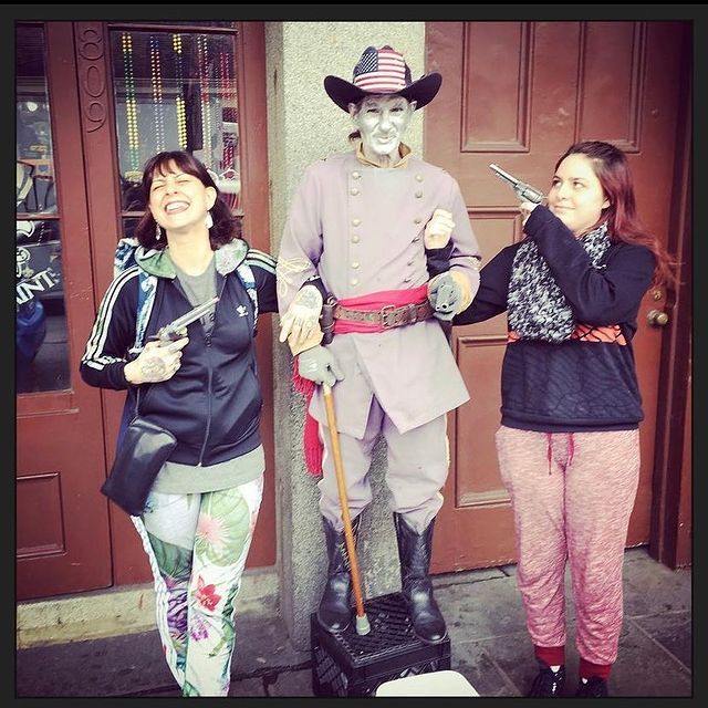Danielle shared a series of photos from the trip on Friday, which included a selfie of the mother-daughter duo, a photo of Memphis having her palm read and a pic of the pair holding guns as they posed next to a statue.