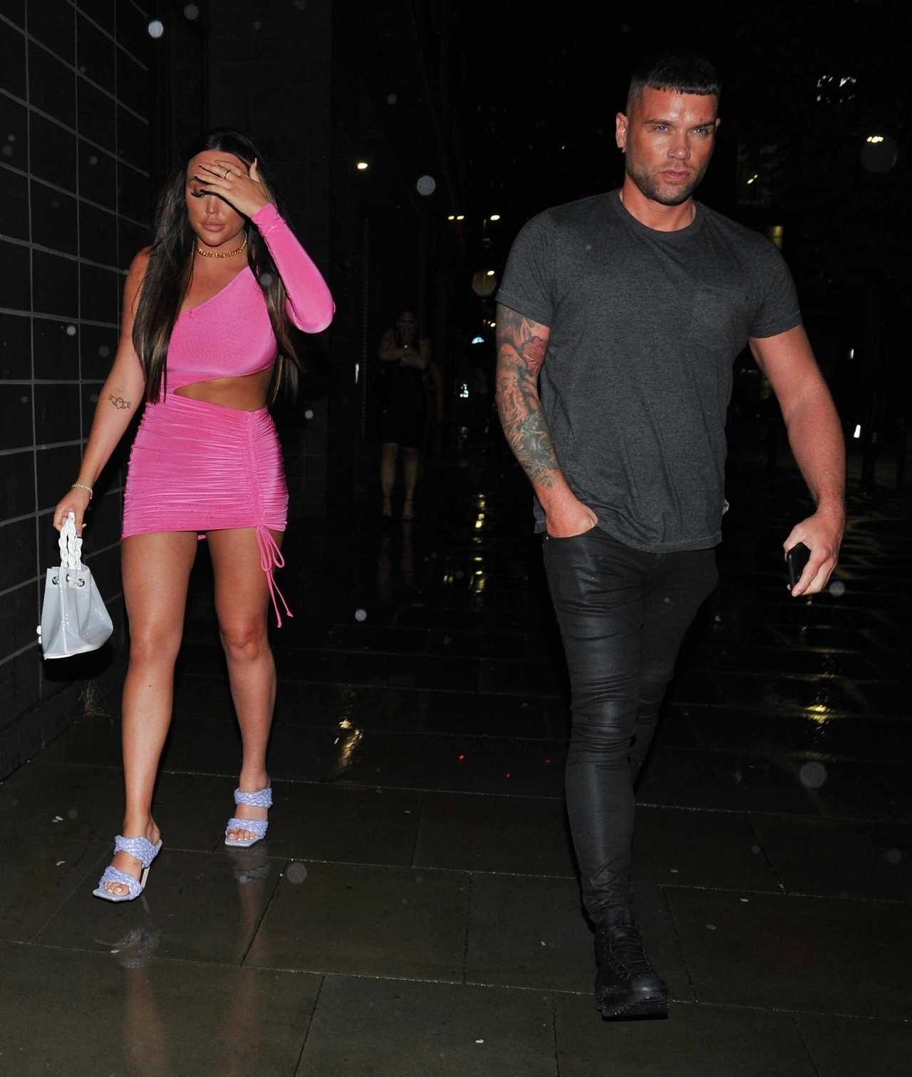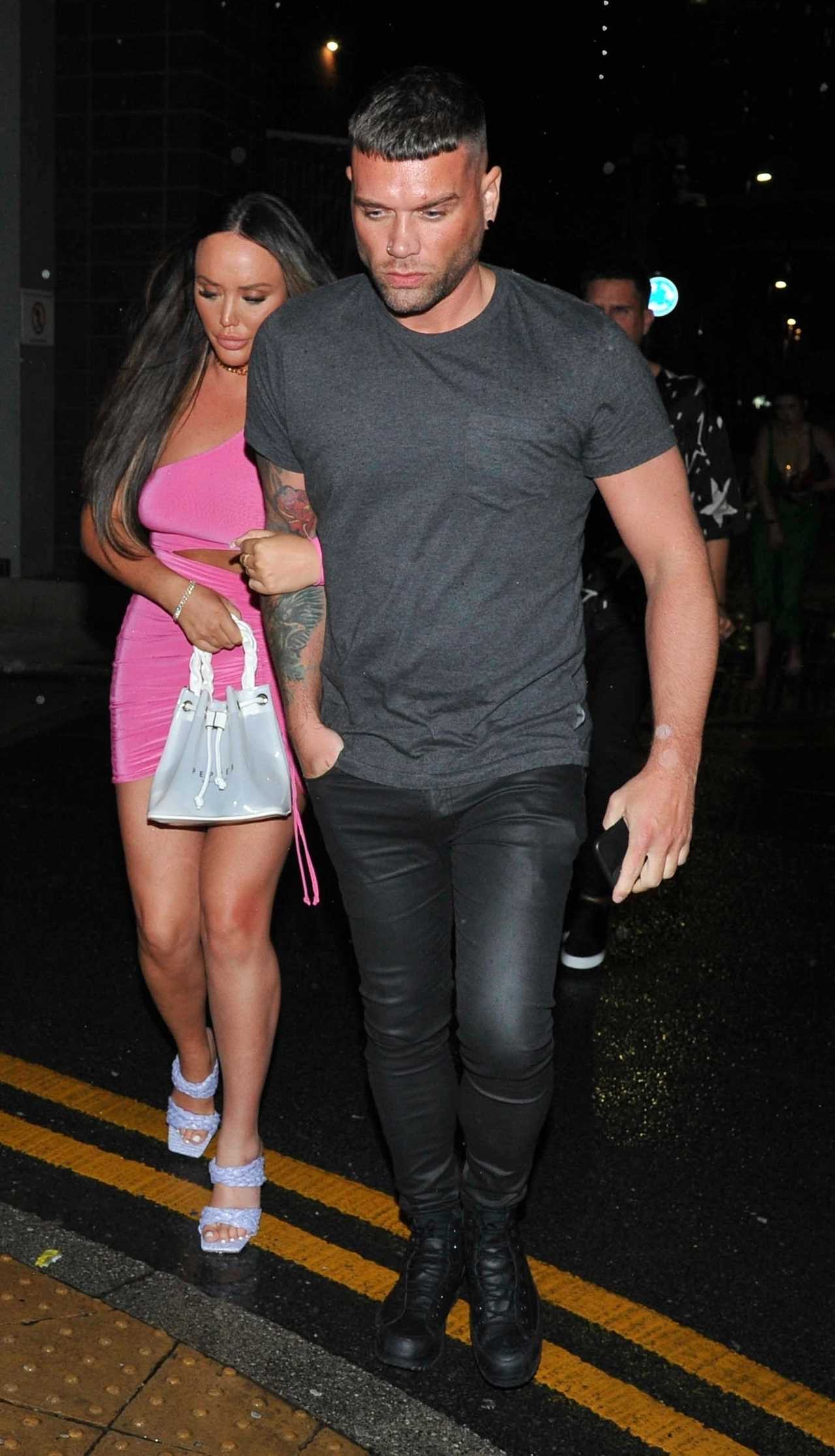 CHARLOTTE Crosby revealed her incredible curves in a pink dress as she linked arms with a mystery man on a night out.