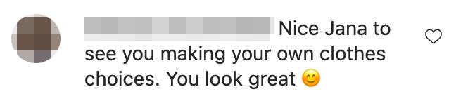 One person wrote: “Nice Jana to see you making your own clothes choices. You look great ![]()