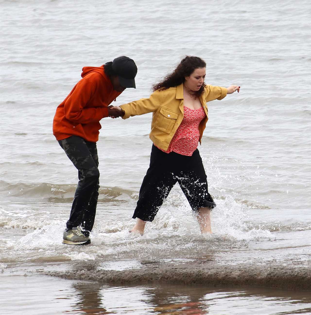 The 32-year-old actress braved the cold water as she filmed with a co-star who ran into the sea.