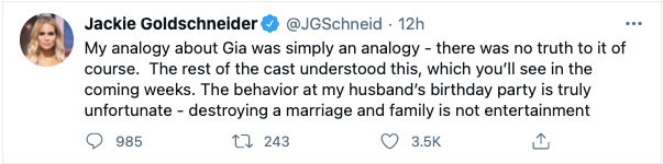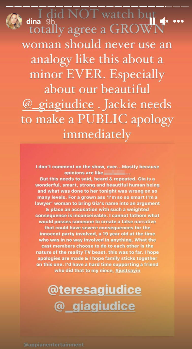 “Especially about our beautiful Gia. Jackie needs to make a public apology immediately.”